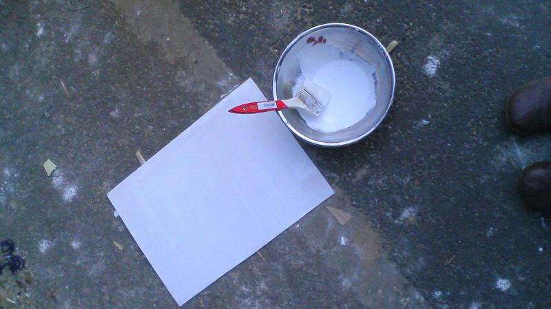 ベニヤ板をノコギリで切り出し、ジェッソと呼ばれる下地剤を塗ります。
